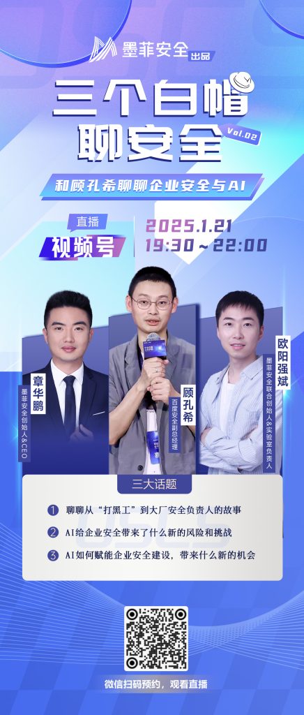 这一次我们非常荣幸的邀请到了一位重磅的外部大佬嘉宾:百度安全副总经理顾孔希。安全行业熟悉他的人都叫他“鸡子”(其实我也不知道为啥叫这个名字,直播的时候可以问问他)。