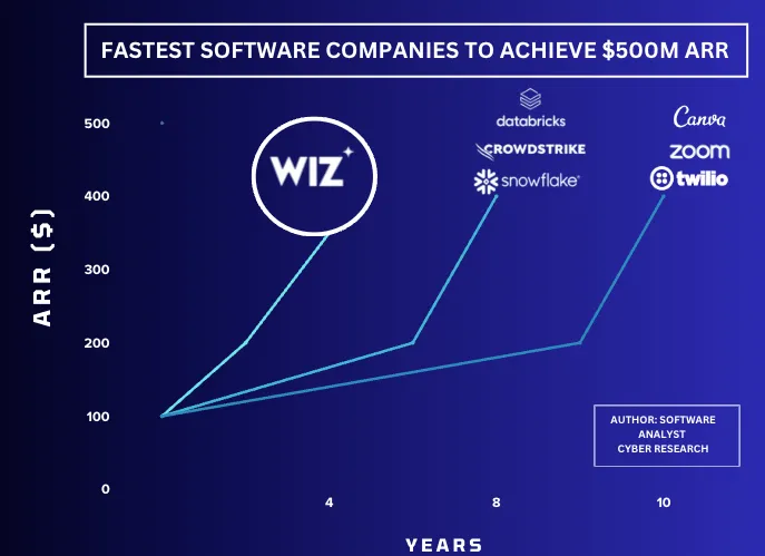 此外非常值得注意的点是,Wiz是历史上最快达成5亿美金ARR(年经常性收入)的软件公司。